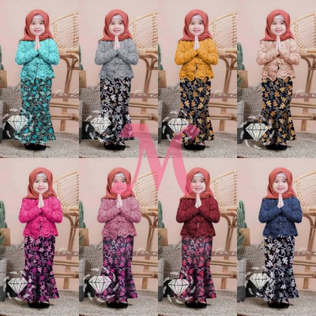 Matt atasan brukat lapis furing full Ld78 Pj45 sleting dan karet blkg, rok batik prada Pj58 karet pinggang, no jilbab utk ank umur