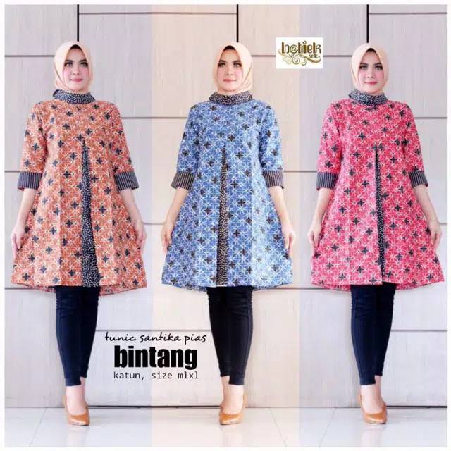 Name: Tunic Santika Pias Bintang / Tunik Batik Cantik Atasan Muslim Wanita Seragam Batik Kantor Formal