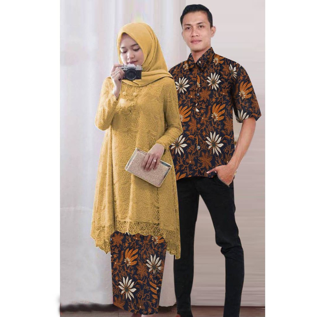 Bahan tunik brukat lapis furing ld110cm pjg 80cm+rok batik silk pinggang karet + Kemeja Cwo L