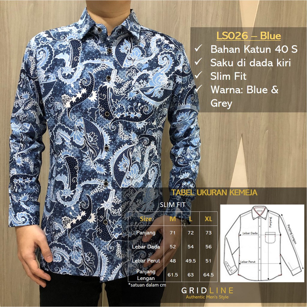 Name: [gridline - Ls026 Blue & Grey] Kemeja Batik Slimfit Pria Katun Lengan Panjang