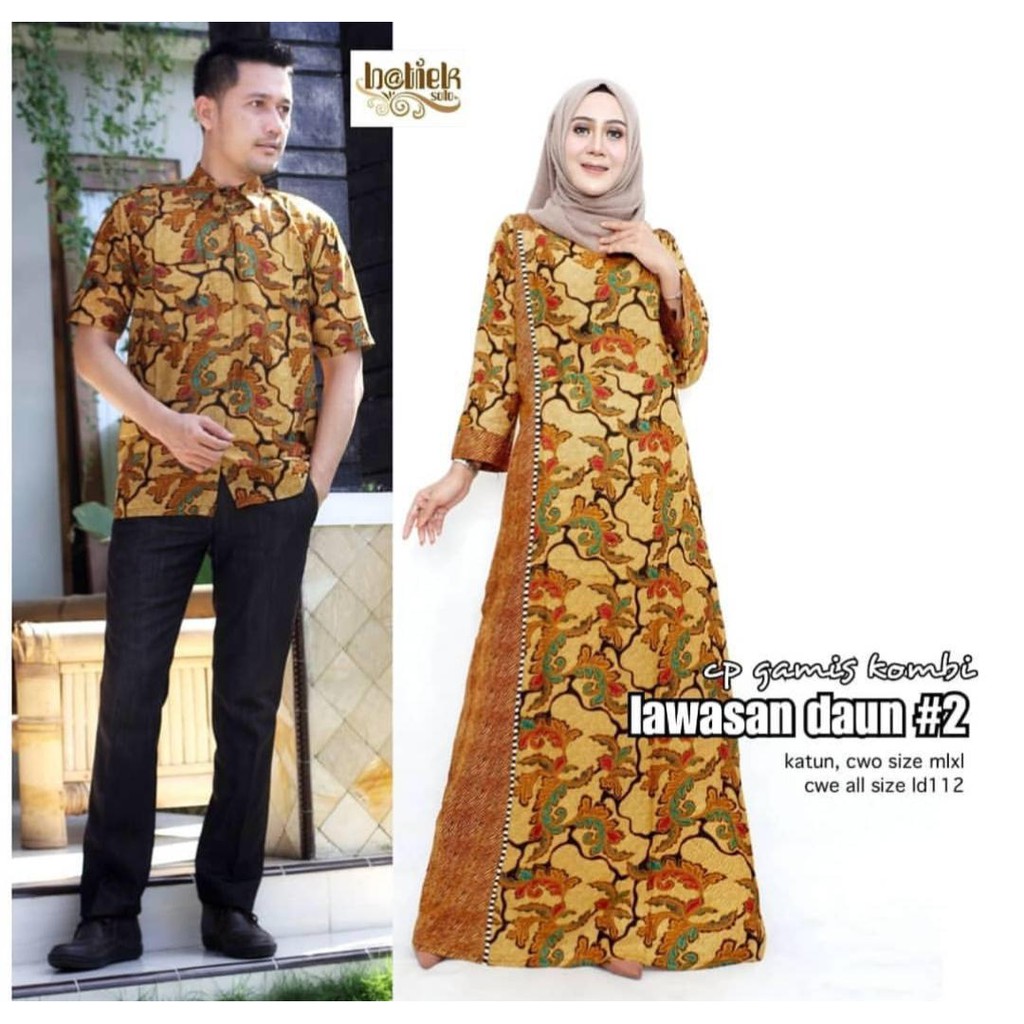 Name: Batik Couple Lawasan Daun Motif Pria Wanita Sarimbit Modern Premium Exclusive Gamis Kombi