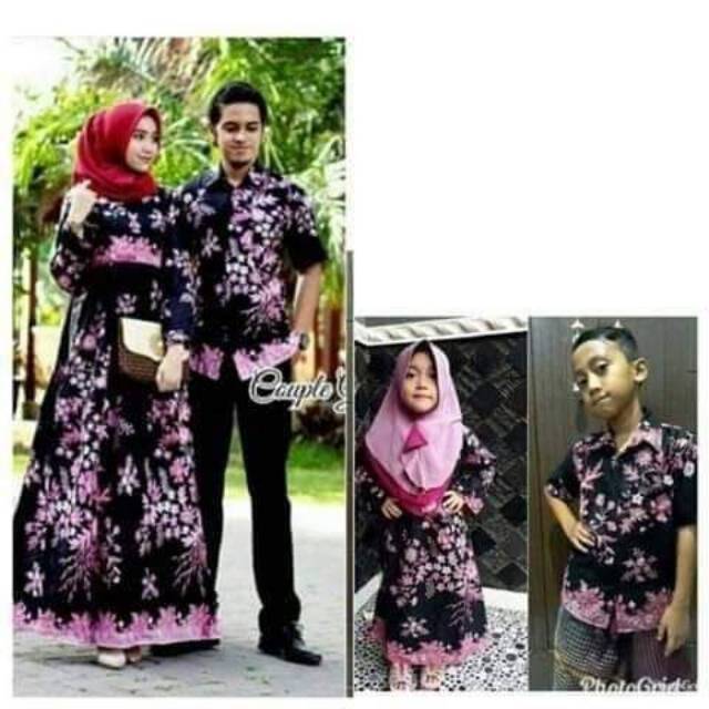 Model : Couple Batik Keluarga yang terdiri dari Gamis Dewasa,Gamis anak, Kemeja Lengan panjang dewasa dan kemeja pendek anak. Gamis ibu busui pakai resleting depan.